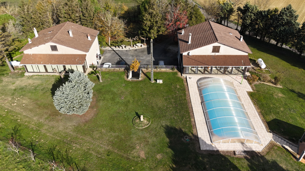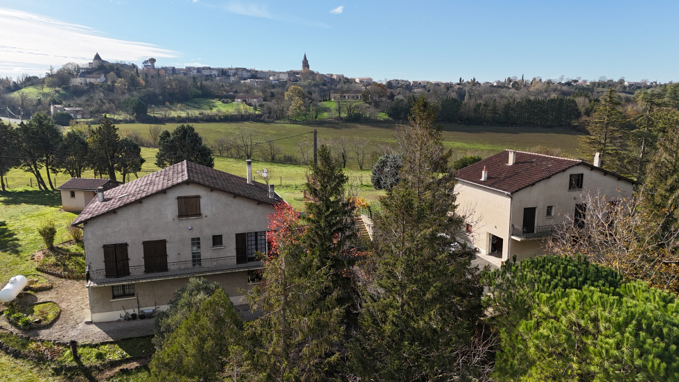 Située sur la commune très recherchée de Saint-Félix-Lauragais, cette propriété rare s’étend sur une magnifique parcelle de 2 hectares offrant un cadre de vie paisible et verdoyant, au cœur de la campagne Lauragaise. L’ensemble comprend deux maisons saines et solides construites dans les années 70, pouvant chacune offrir environ 300 m² habitables. Ces bâtisses au fort potentiel disposent actuellement de 7 chambres, d’un dortoir, de 3 cuisines, de vastes espaces communs et d’un grand garage. Leur conception et leurs volumes généreux laissent place à de nombreuses possibilités d’aménagement pour tout type de projet : résidence familiale, gîtes, chambres d’hôtes, restauration, pensions equestres ou encore accueil touristique. Les extérieurs ne sont pas en reste : la propriété bénéficie d’une grande piscine, idéale pour profiter des beaux jours, ainsi que d’un verger offrant un environnement bucolique et apaisant. Depuis la terrasse et les jardins, vous profiterez d’une superbe vue sur le village de Saint-Félix-Lauragais, un panorama rare et recherché dans le secteur. L’emplacement, au calme absolu mais à proximité des axes principaux, permet de rejoindre facilement Revel, Castelnaudary et Toulouse, tout en profitant d’un cadre naturel préservé. Cette propriété représente une opportunité unique dans une région très demandée, offrant à la fois espace, potentiel et charme authentique. À découvrir sans tarder.